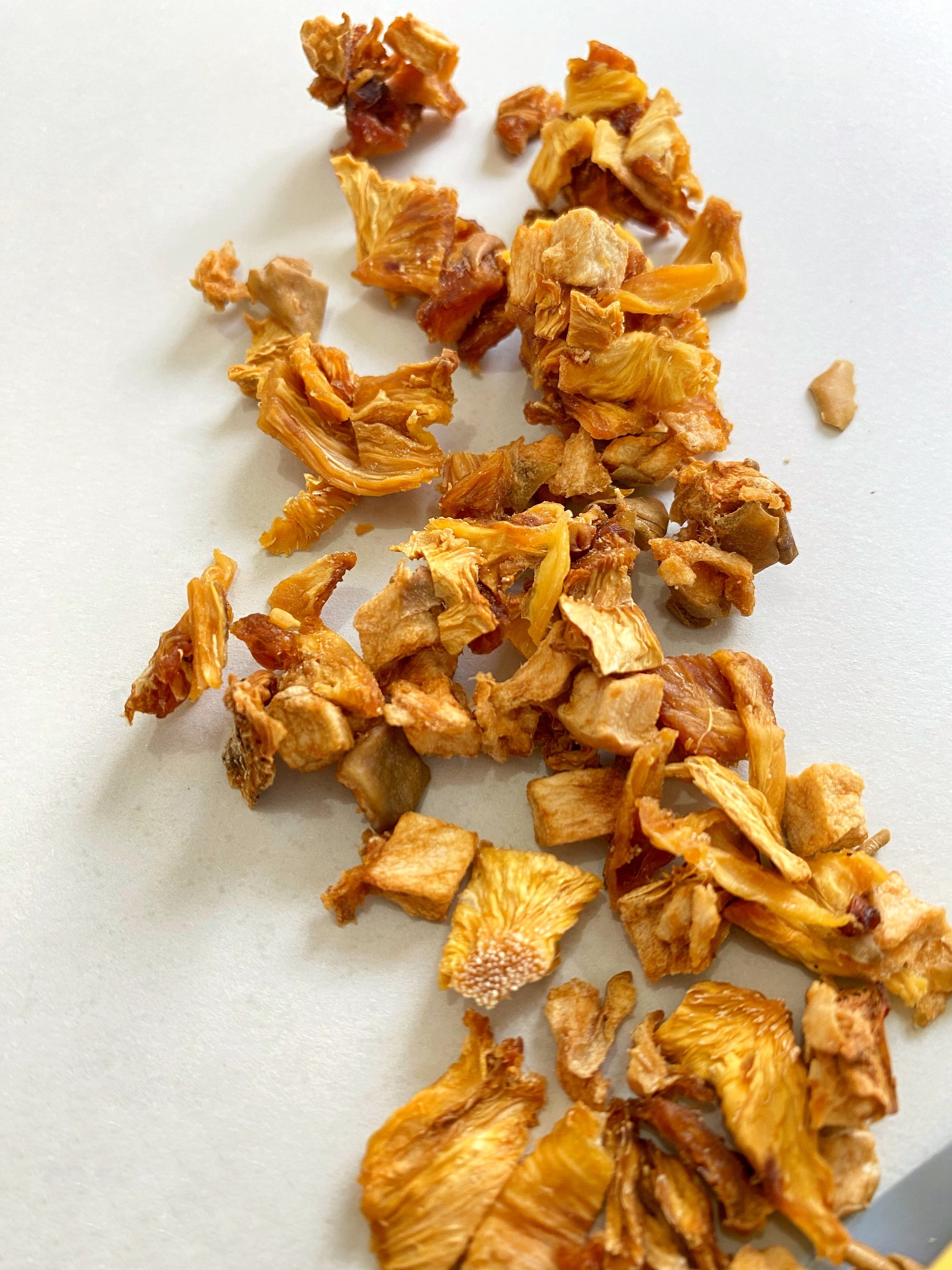 Mezcla de trozos de fruta deshiratada, ideal para consumir como snack, usar como topping en recetas y para preparar bebidas infusionadas frías o calientes.